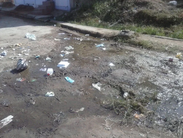Posos enormes de limo verde, basura, maleza y cantidades de insectos rodean las viviendas de la zona.
