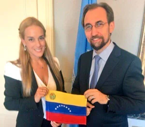 La esposa de López relató a Zeid "cómo el derecho a la vida de los venezolanos no es respetado: cada 20 minutos muere una persona en el país; como el derecho a la alimentación es violado a causa de la escasez y de la inflación; como vivimos con miedo constante a causa de la inseguridad”.