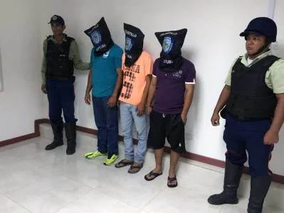 El subdirector del cuerpo de seguridad Local, comisario Argenis Rodríguez, identificó a los detenidos como José Gregorio Guarema (27), Roimer Alejandro Mendoza González (19) y Manuel De Jesús Villarroel Bastardo (27), quienes en compañía de otro sujeto –que se dio a la fuga- lograron despojar a sus víctimas de 700 dólares en efectivo, seis mil bolívares y un teléfono celular.