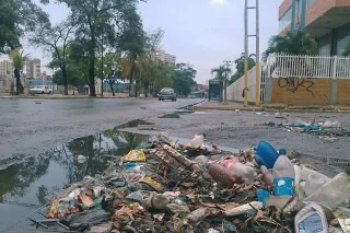 Desde las ruinas del casino Platinum hasta la redoma Las Banderas, la avenida Stadium y las aceras en ambos sentidos permanecieron obstruidas este sábado por recipientes de plástico, restos de electrodomésticos, escombros de construcción, ramas, latas y bolsas desgarradas.