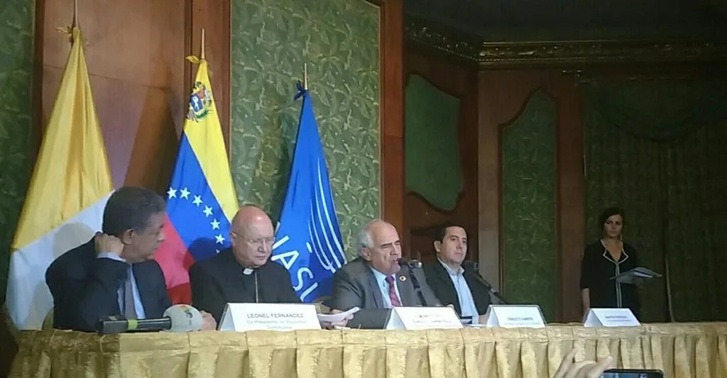 Anteriormente, el secretario ejecutivo de la MUD, Jesús “Chúo” Torrealba, y dirigentes de Voluntad Popular asistieron a la Nunciatura Apostólica para evaluar los acuerdos del diálogo con el nuncio apostólico, Aldo Giordano; el cardenal Jorge Urosa Savino y el monseñor Clauidio María Celli.