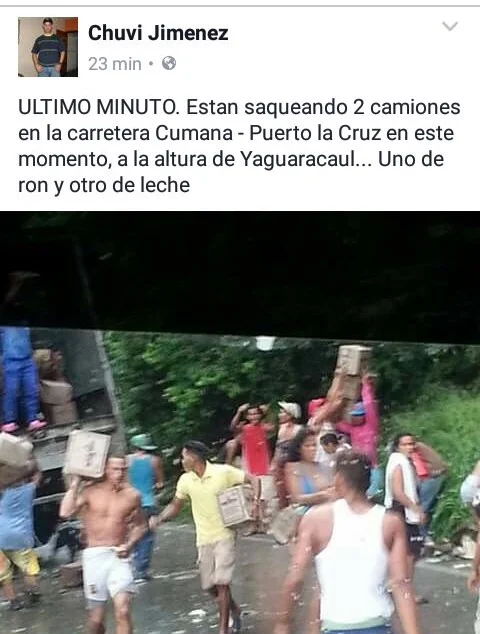 Usuarios de Facebook reportan saqueo vía Cumaná