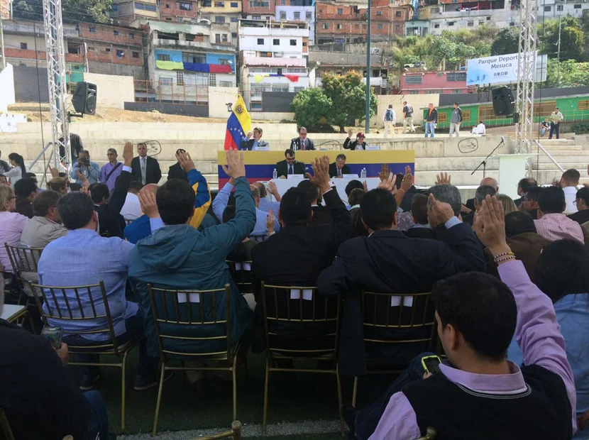 La Asamblea realizó una sesión especial en Petare al este de Caracas sin la presencia de la bancada oficialista, y debatió la declaración emitida el pasado fin de semana por la Cancillería rusa, que indicó que un ala radical de la oposición había tomado el control del cuerpo legislativo.