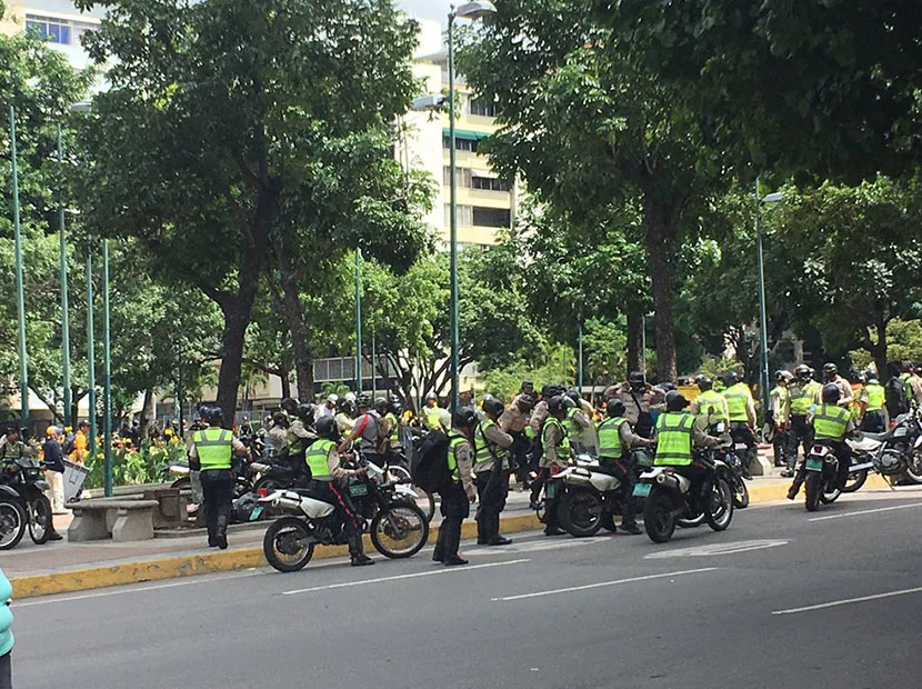Funcionarios de la Policía Nacional Bolivariana (PNB) y efectivos de la Guardia Nacional Bolivariana (GNB) tomaron la Plaza Francia de Altamira, municipio Chacao del estado Miranda e impidió que se realizara el Plantón convocado por la Mesa de la Unidad Democrática (MUD).