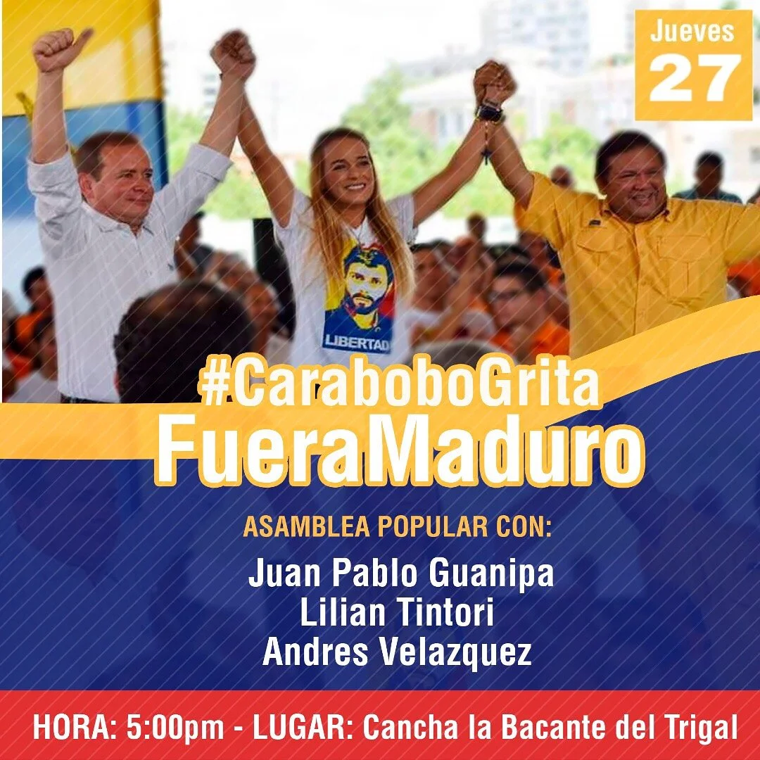 Este jueves el líder opositor continuará su recorrido nacional junto a Tintori y Velásquez, en el estado Carabobo, para activar a la ciudadanía en rescate de la democracia