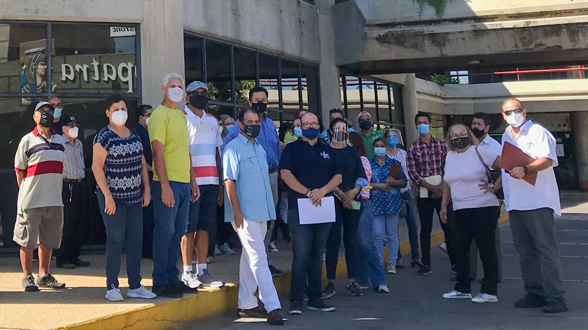 Lechería, 14 enero 2021.- El coordinador general del partido Vente Venezuela en el municipio Lic Diego Bautista Urbaneja de Anzoátegui, Pedro Galvis, durante una protesta pacífica llevada a cabo por los vecinos en la sede de la alcaldía de Lechería, fijó su posición ante lo que considera abusos por parte de las autoridades, para establecer las tarifas del servicio de aseo urbano y domiciliario en la ciudad.