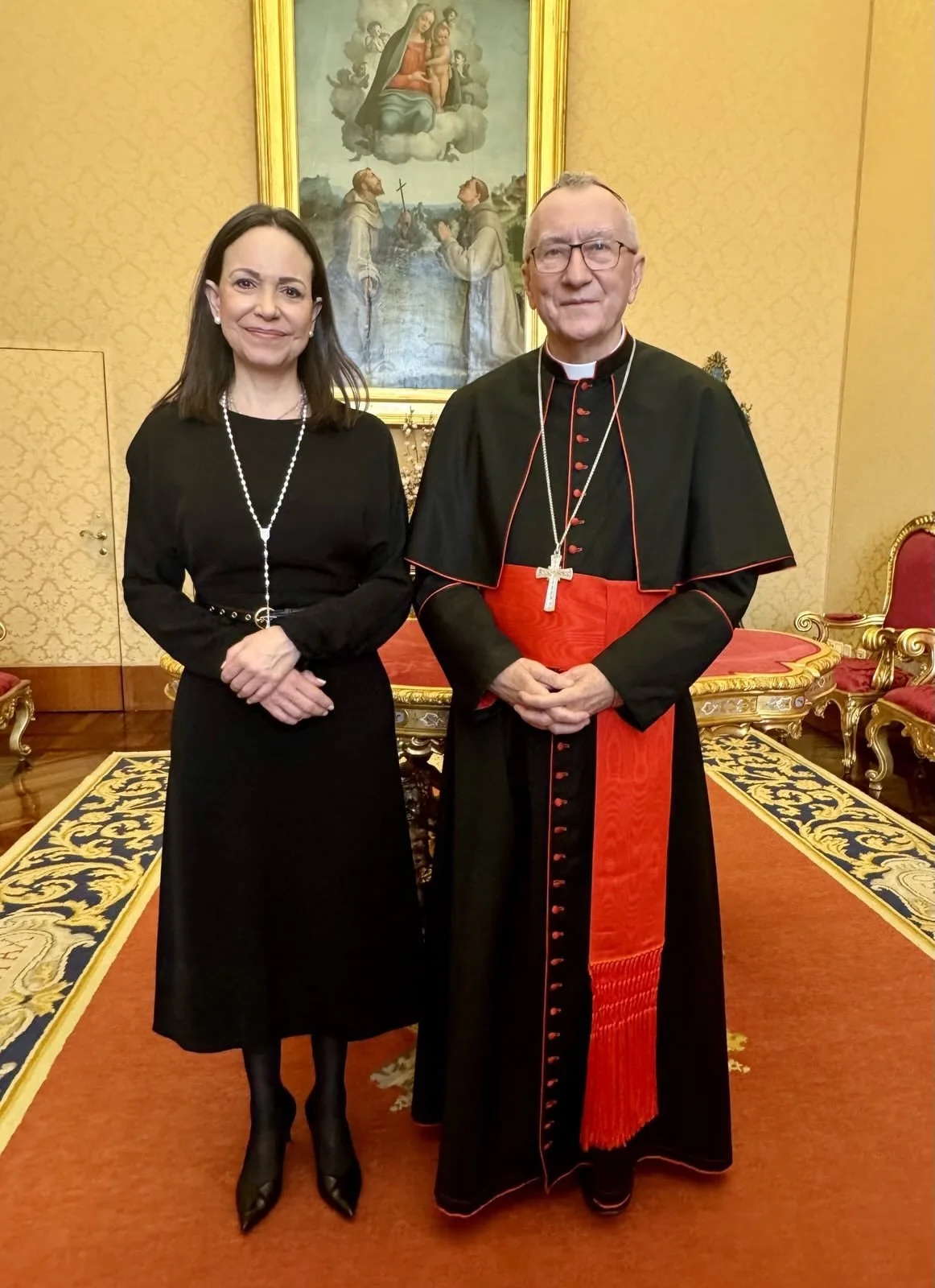 Posterior a este encuentro, la líder también pudo conversar con Pietro Parolin, secretario de Estado de la Santa Sede y Nuncio en Venezuela