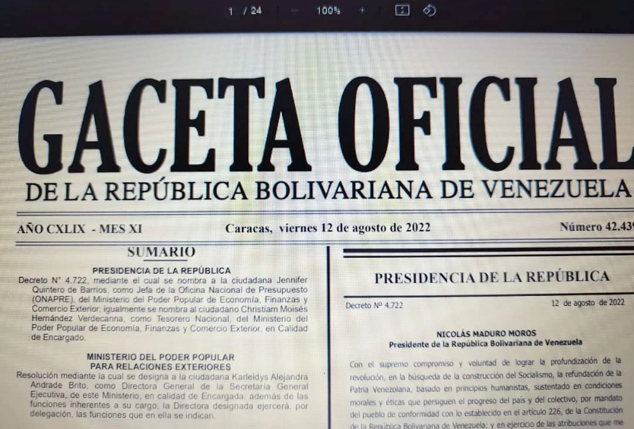 Nacionales Pedro Galvis 16/8/22 Nacionales Pedro Galvis 16/8/22 Maduro hizo cambios de dirección en Onapre y la Tesorería Nacional Se cambiaron a los directivos de ambos entes, según el periodista Eligio Rojas Leer más