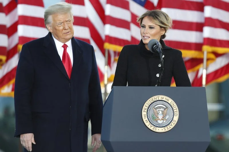 Miembros de la familia Trump se reunieron para la despedida en una base militar, junto con partidarios de Trump, que corearon: “Te amamos” . “Gracias, Trump” y “U.S.A.”